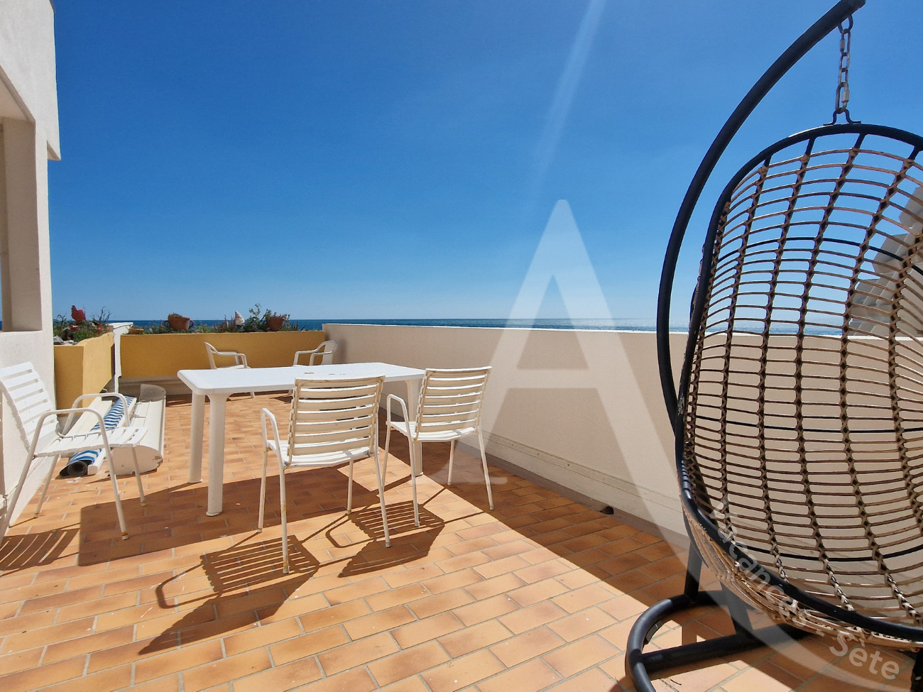 Terrasse spacieuse avec une superbe vue imprenable sur la mer et sans vis-à-vis.